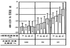 2、当含油率/连通孔隙度之比值为100%时,即轴承的孔隙充满润滑油时,轴承的滑动噪音最小。随着含油率/连通孔隙度之比值的减少,轴承的滑动噪音增大。