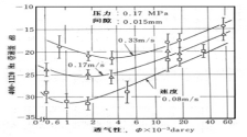压力增高时,滑动噪音趋于增大。这是由于压力增高时,从滑动面油膜向含油轴承体内泄漏的油增多,致使油膜减薄,轴与含油轴承金属接触的几率增大所致。同时,还可以看出,透气性减小到某一值后,再减小时,压力越高,滑动噪音增大的趋势就越明显。
